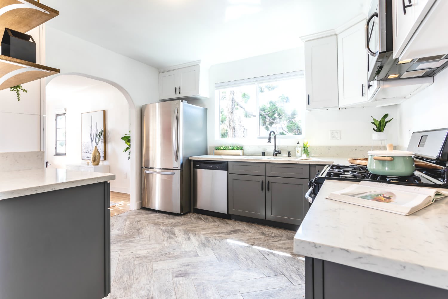 This remodeled 1929 Spanish-style home has charming original features such as beautiful windows, coved ceilings and hardwood floors. Updated systems, foundation bolting and newer kitchen/bathrooms complete this home. Storage space galore, with the large garage having ADU potential. This home is ready to enjoy on day one! With one neighbor to the east, the large lot is a relaxing private sanctuary. Welcome home.